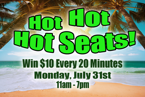 Feel the heat? You may be in a HOT SEAT! Win $10 in FreePlay every 20 minutes from 11am-7pm on July 31st. All you have to do is have your My Party Player’s Card in to win!